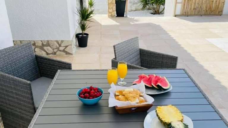 In der voll ausgestatteten Küche des Soares Village II können Sie Ihre eigenen Mahlzeiten zubereiten und diese auf der Terrasse oder im Garten genießen. Alternativ können Sie auch die nahe gelegenen Restaurants erkunden und die lokale Küche probieren.