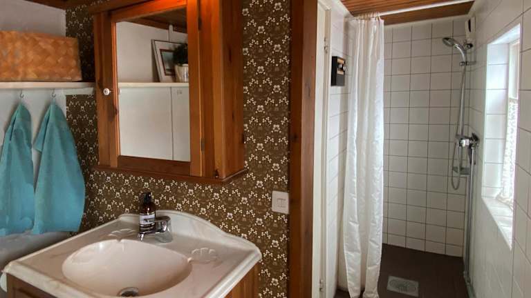 Das Ferienhaus im Sövröds Hage verfügt über 2 Schlafzimmer, ein gemütliches Wohnzimmer und eine voll ausgestattete Küche mit Kühlschrank und Wasserkocher. Das Badezimmer ist mit einer Dusche ausgestattet. Handtücher und Bettwäsche können gegen Aufpreis zur Verfügung gestellt werden. Genießen Sie den Komfort und die Privatsphäre eines eigenen Ferienhauses, umgeben von der Natur.