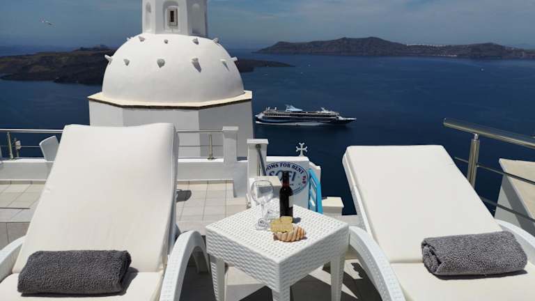 Das familiengeführte Sofi Rooms ist in einem traditionell weiß getünchten Gebäude im Kykladenstil untergebracht und bietet eine gemütliche Atmosphäre. Die Unterkunft verfügt über eine gemeinschaftliche Terrasse mit Blick auf die Caldera, den Vulkan und die Ägäis.