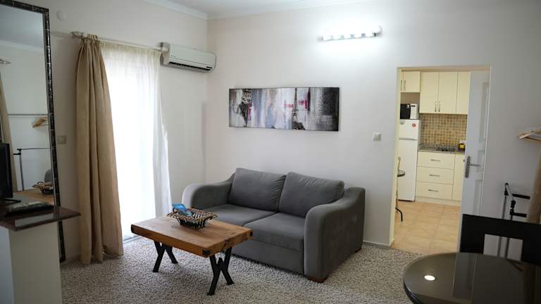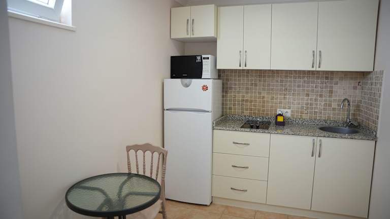 In der Sofia Residence können Sie sich selbst versorgen, da die Unterkünfte über eine gut ausgestattete Küche mit einer Mikrowelle, einem Kühlschrank und einem Kochfeld verfügen. Sie können Ihre eigenen Mahlzeiten zubereiten und diese im gemütlichen Sitz- und Essbereich genießen. Alternativ können Sie auch die nahegelegenen Restaurants und Cafés im Yachthafen von Kemer erkunden und die lokale Küche probieren.