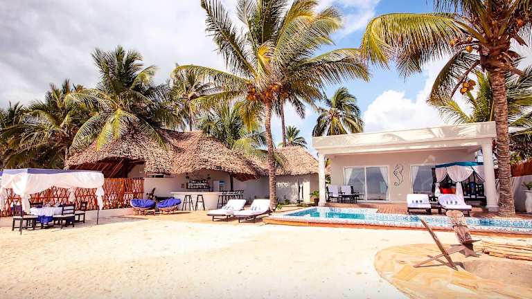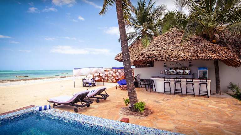 Das Sofia Sea View Hotel begrüßt Sie in Pwani Mchangani, einem charmanten Fischerdorf im Nordosten der Insel Sansibar. Von hier aus können Sie die atemberaubende Natur und die unberührten Strände der Region entdecken. Das Hotel liegt etwa 32 km von der belebten Stadt Sansibar entfernt und bietet Ihnen somit eine ruhige und idyllische Umgebung, in der Sie sich entspannen können. Die Unterkunft verfügt über einen eigenen Strand, an dem Sie die Sonne und das türkisfarbene Wasser genießen können. In der Umgebung finden Sie auch lokale Restaurants und Geschäfte, in denen Sie authentische Produkte und Speisen entdecken können.