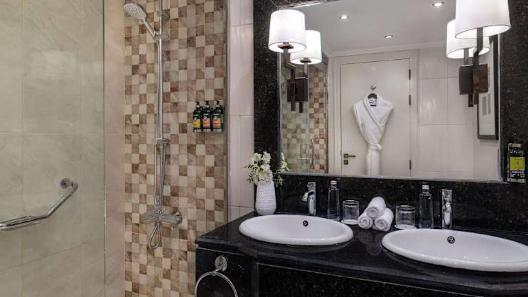 Das Hotel bietet verschiedene gastronomische Einrichtungen, darunter ein Restaurant, ein Café und eine Bar. Ein kontinentales Buffetfrühstück wird täglich angeboten, zudem gibt es Kindermenüs. Das Restaurant Arabesque serviert internationale Küche und bietet Afternoon Tea an.