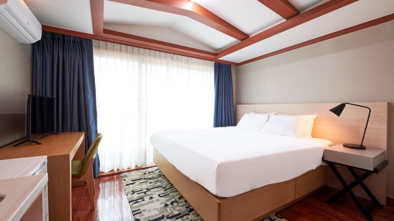 Die Zimmer sind klimatisiert und verfügen über ein Doppelbett, ein Queensize-Bett oder ein Kingsize-Bett. Sie sind mit einer Kochnische und einem Kühlschrank ausgestattet. Zu den weiteren Annehmlichkeiten gehören ein Flachbild-TV mit Satellitenempfang und kostenfreies WLAN. Die Badezimmer sind mit Dusche und Haartrockner ausgestattet. Einige Zimmer bieten einen Balkon und Stadtblick.