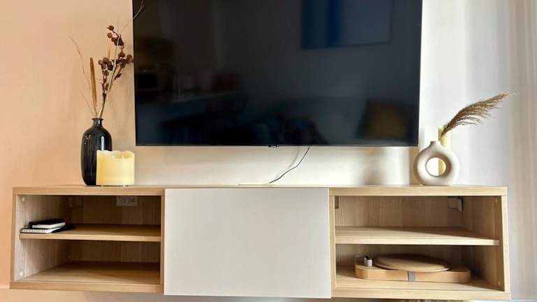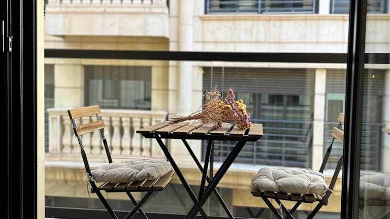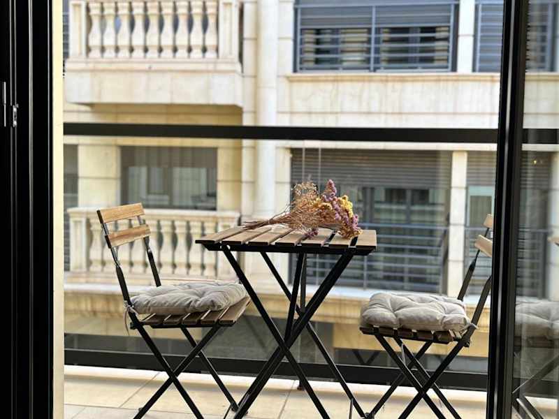 Die Ferienwohnung besteht aus einem Schlafzimmer und einem Badezimmer. Zur Ausstattung gehören Bettwäsche, Handtücher, ein Flachbild-TV, eine voll ausgestattete Küche sowie ein Balkon mit Stadtblick.