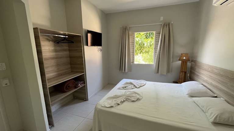 Die Zimmer im Solar do Cerrado Hotel verfügen über einen Kleiderschrank, einen Fernseher und Klimaanlage. Jedes Zimmer ist mit einem eigenen Badezimmer mit Dusche und kostenlosen Pflegeprodukten ausgestattet. Bettwäsche und Handtücher sind vorhanden, und ausgewählte Zimmer bieten zusätzlich eine Veranda oder ein Patio.