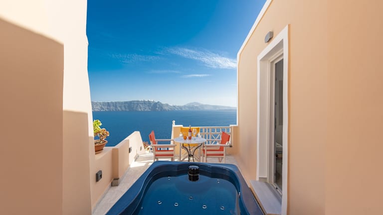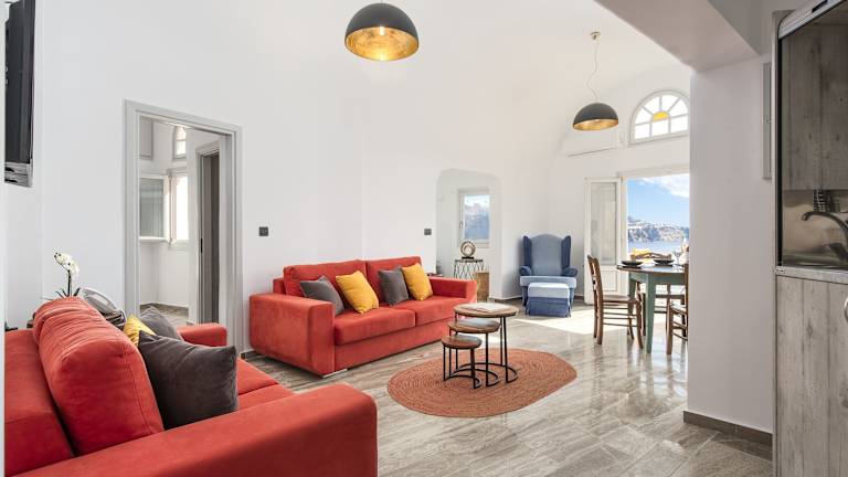 Sole d'oro Sunset & Caldera View Grand Suite ist eine Villa, die durch ihre moderne Ausstattung besticht. Die Unterkunft bietet Annehmlichkeiten wie eine Terrasse und einen Balkon mit Meerblick sowie kostenfreies WLAN. Die Villa ist klimatisiert und besteht aus zwei separaten Schlafzimmern und zwei Badezimmern, die mit kostenlosen Pflegeprodukten und einem Haartrockner ausgestattet sind. Des Weiteren gibt es ein Wohnzimmer, in dem Handtücher und Bettwäsche bereitgestellt werden. Die Anlage verfügt über einen Whirlpool und stellt sicher, dass die Unterkunft nichtraucherfreundlich ist.