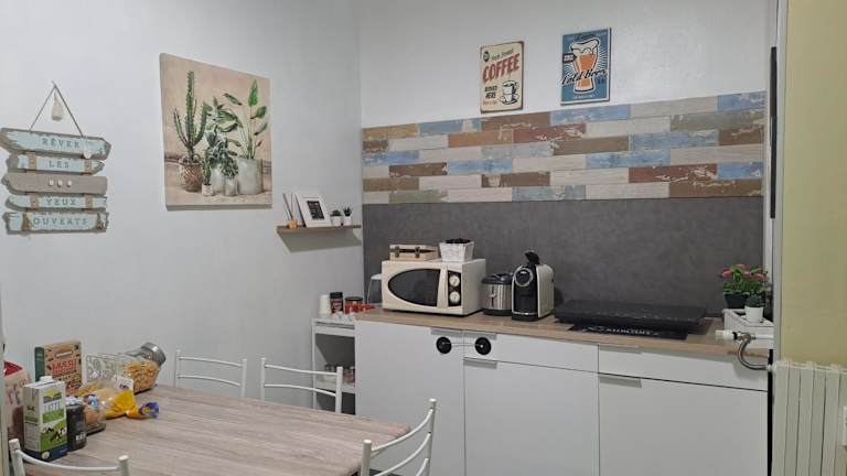 Die Ferienwohnung besteht aus 1 Schlafzimmer, einem Wohnzimmer und einer voll ausgestatteten Küche, die mit einem Kühlschrank und einer Kaffeemaschine ausgestattet ist. Zudem umfasst die Ausstattung ein Badezimmer mit einer Dusche und kostenlosen Pflegeprodukten. Handtücher und Bettwäsche werden bereitgestellt.