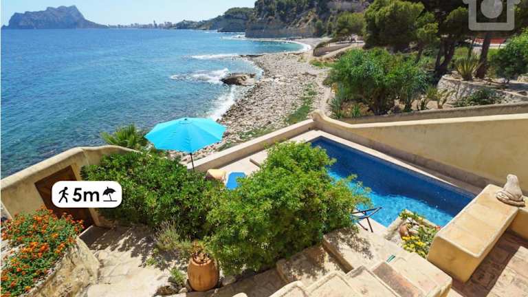 Die SolHabitat Villa Papavents in Moraira ist eine atemberaubende Strandvilla mit direktem Zugang zum Strand. Mit einem eigenen Außenpool und einer beeindruckenden Aussicht auf die Bucht Cala Baladrar bietet diese Villa den perfekten Rahmen für einen erholsamen Urlaub. Die geräumigen Zimmer, die gut ausgestattete Küche und die großzügige Terrasse mit Gartenmöbeln lassen keine Wünsche offen. Genießen Sie die Nähe zu verschiedenen Restaurants, Cafés und Lebensmittelgeschäften sowie die Möglichkeit, Calpe in nur 15 Minuten mit dem Auto zu erreichen.