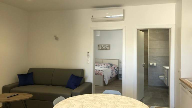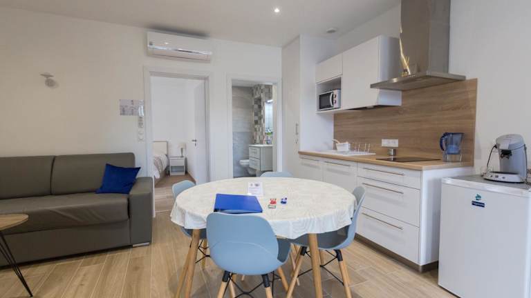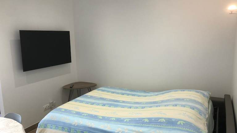 Die Ferienwohnung ist klimatisiert und umfasst ein Schlafzimmer, ein geräumiges Wohnzimmer sowie eine voll ausgestattete Küche mit Kühlschrank und Kaffeemaschine. Darüber hinaus bietet das Badezimmer eine Dusche und kostenlose Pflegeprodukte. Handtücher und Bettwäsche sind ebenfalls vorhanden.