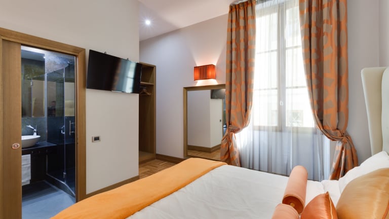Das Hotel bietet 9 Nichtraucherzimmer, die sich auf zwei 3-stöckige Gebäude verteilen. Die Zimmer sind schallisoliert und klimatisiert, sodass Sie eine angenehme Nachtruhe genießen können. Zur Ausstattung gehören ein LCD-Sat-TV und kostenfreies WLAN. Einige Zimmer bieten zudem einen Blick auf die Piazza San Lorenzo.