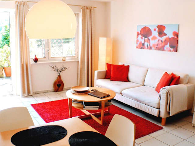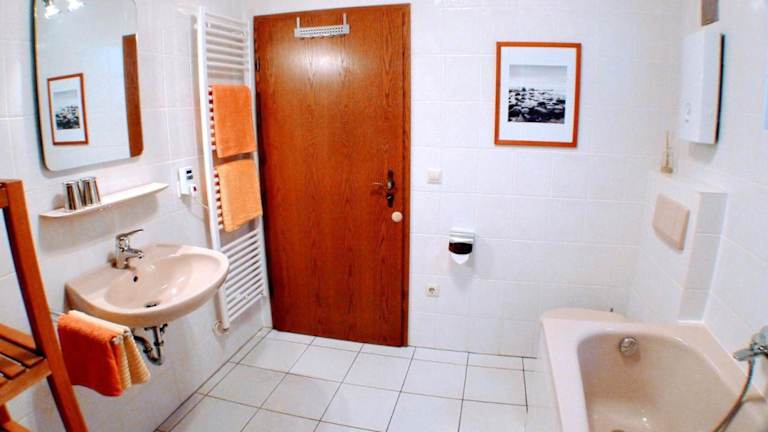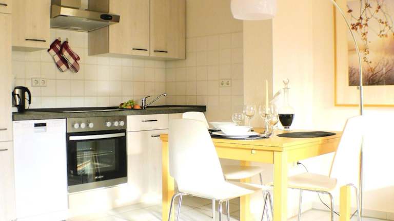 Die Ferienwohnung umfasst ein Schlafzimmer, ein Wohnzimmer mit TV, eine gut ausgestattete Küche mit Kühlschrank und Geschirrspüler sowie ein Badezimmer mit Badewanne. Handtücher und Bettwäsche werden zur Verfügung gestellt.