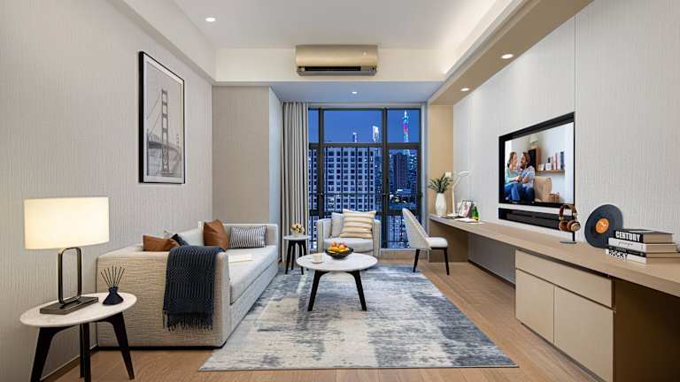 Das Somerset Haizhu Centre Guangzhou bietet Ihnen eine komfortable Unterkunft im Bezirk Hai Zhu von Guangzhou. Mit einer voll ausgestatteten Küche, kostenfreiem WLAN und Privatparkplätzen ist es der ideale Ort, um die Stadt zu erkunden. Genießen Sie ein kontinentales oder vegetarisches Frühstück und nutzen Sie das Fitnesscenter und den Miniclub. Die zentrale Lage ermöglicht es Ihnen, Sehenswürdigkeiten wie den Canton Tower und das Guangdong Museum in kurzer Zeit zu erreichen.