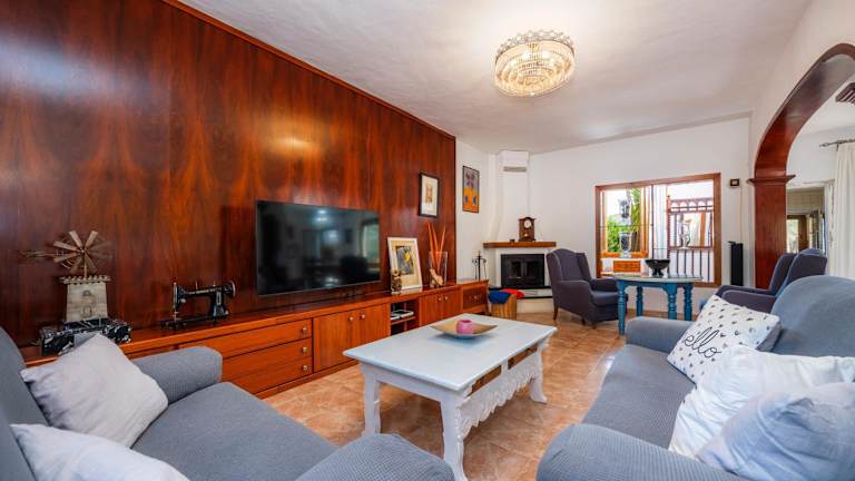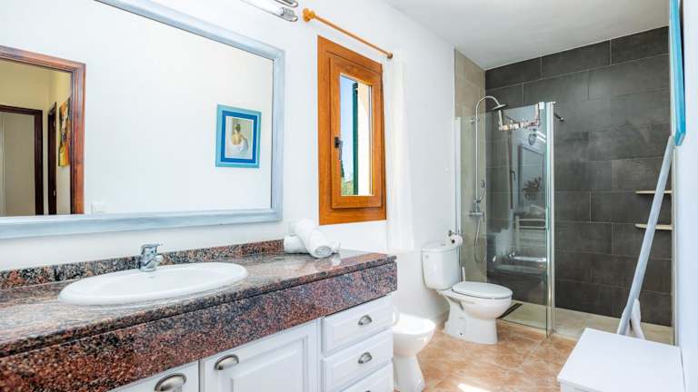 Das Ferienhaus verfügt über fünf Schlafzimmer, drei Badezimmer, eine voll ausgestattete Küche sowie einen Fernseher mit Satellitenkanälen. Bettwäsche und Handtücher sind ebenfalls vorhanden. Eine Terrasse mit Blick auf die Berge ergänzt die Ausstattung.
