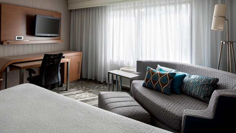 Die klimatisierten Zimmer sind mit einem Kingsizebett, einem Sofabett sowie einem Balkon oder einer Terrasse ausgestattet. Zu den Annehmlichkeiten zählen ein Safe, eine Minibar, ein Kühlschrank, eine Mikrowelle und eine Tee-/Kaffeemaschine. Außerdem gibt es einen Schreibtisch, ein TV-Gerät, ein Radio, einen Wecker und kostenfreies WLAN. Die Zimmer verfügen über ein Badezimmer mit Dusche, Haartrockner und Bademänteln.