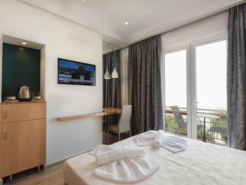 Die Zimmer im Sonia Hotel & Suites sind komfortabel und bieten kostenfreies WLAN sowie einen Balkon mit Blick auf das Meer und die antiken römischen Ruinen. Alle Zimmer sind klimatisiert und verfügen über einen LCD-Sat-TV und einen Kühlschrank. Das eigene Bad ist mit einer Dusche und einem Haartrockner ausgestattet.