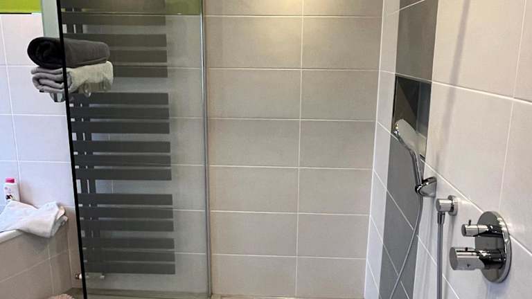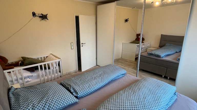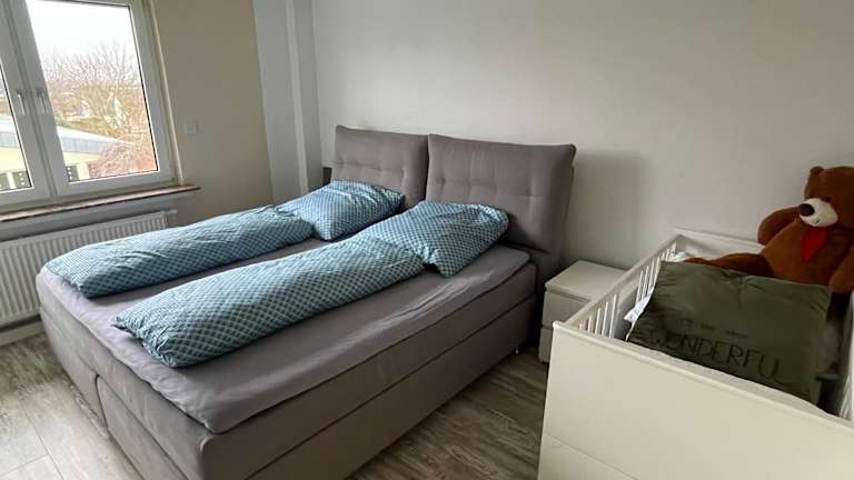 Die Ferienwohnung ist mit zwei Schlafzimmern und einer großen Küche ausgestattet, die mit einem Kühlschrank und Geschirrspüler eingerichtet ist. Ein Flachbild-TV, ein Sitzbereich und ein Badezimmer mit Dusche sind ebenfalls vorhanden.
