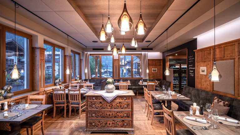 Weinkultur & Kulinarik im Sonnenhof - Im modernen Restaurant, Wintergarten & in der Original Tiroler Zirbenstube werden Sie mit ausgesuchten Weinen & einem 4-gängen Genussmenü kulinarisch verwöhnt – gemütliche Atmosphäre, hochwertige Produkte & Tiroler Lebensart. “Michael Huber, der Chef des Hauses, kocht mit seinem Team moderne, naturbelassene Gerichte und verarbeitet zum großen Teil regionale Produkte.” HIGHLIGHT: Fine Dining im à la carte Restaurant ESSBAR. Lockere Atmosphäre & alpiner Lifestyle - Genießen, Sitzen & Wohlfühlen. Beste Grundprodukte so natürlich wie möglich zubereitet, eine perfekte Lagerung, feine Gewürze die den Eigengeschmack verstärken – ohne SchnickSchnack am Teller präsentiert! ESSBAR im Genusshotel Sonnenhof – ausgezeichnet mit 2 Gabeln im FALSTAFF RESTAURANTGUIDE & Nr. 1 Restaurant auf Tripadvisor. Unverträglichkeiten (Laktose, Gluten)? Allergien? Diabetes? Wir kochen mit Bedacht und gehen auf Ihre Wünsche ein! Bitte bei Ihrer Reservierung ankündigen, vielen Dank!