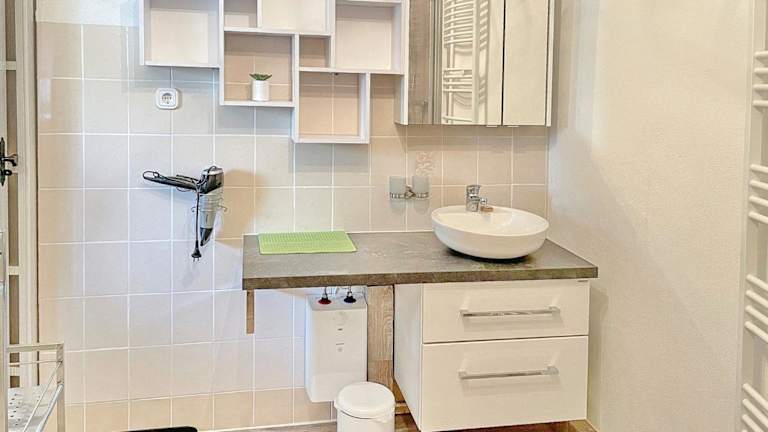 Die Ferienwohnung in Sonnenring mini besteht aus einem Schlafzimmer sowie einem Badezimmer, das mit einer Dusche und einem Haartrockner ausgestattet ist. Auf Anfrage können Handtücher und Bettwäsche gegen Aufpreis bereitgestellt werden.