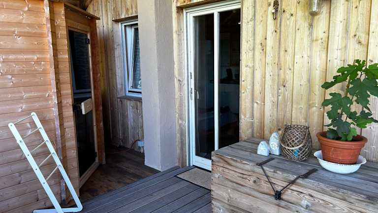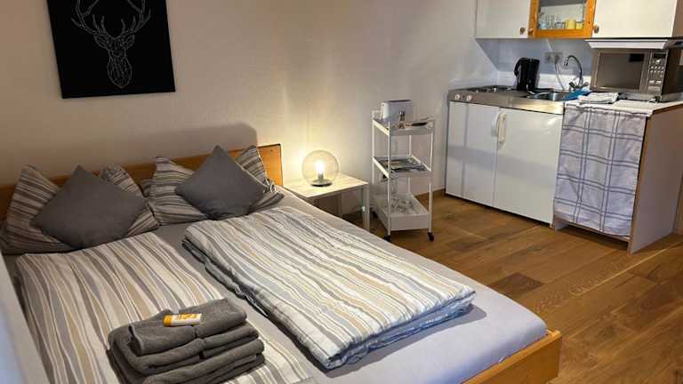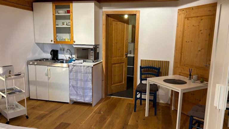 Die Ferienwohnung verfügt über ein Schlafzimmer und ein Badezimmer mit Dusche. Zu den weiteren Einrichtungen gehören ein Sitzbereich und eine Küche, die mit einem Kühlschrank ausgestattet ist. Handtücher und Bettwäsche werden zur Verfügung gestellt. Die Unterkunft bietet zudem einen privaten Check-in/-out und eine Sonnenterrasse.