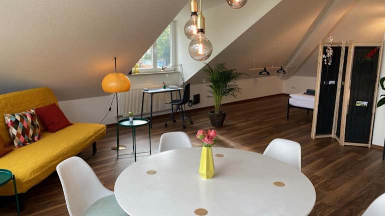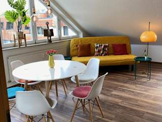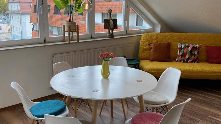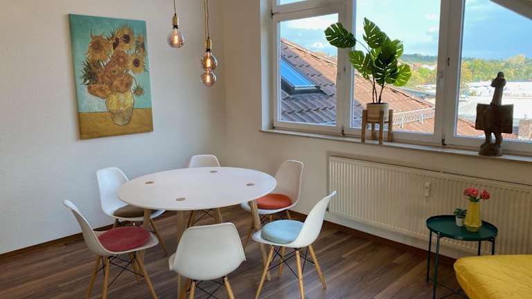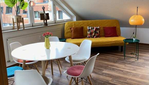 Die Sonnige Wohnung befindet sich im Herzen von Marbach, einer charmanten Stadt am Neckar. In der Nähe finden Sie verschiedene Sehenswürdigkeiten und Aktivitäten, darunter das Staatstheater und die Börse Stuttgart, die beide nur 24 km entfernt liegen. Der Hauptbahnhof Stuttgart ist ebenfalls leicht erreichbar, etwa 24 km entfernt. Für weitere Unterhaltungsmöglichkeiten können Sie das Theater Heilbronn besuchen, das nur 31 km entfernt liegt. Der Flughafen Stuttgart ist etwa 54 km entfernt.
