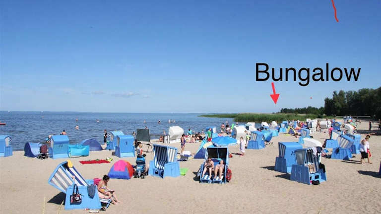 Die Unterkunft befindet sich in der Nähe von Mönkebude, nur 100 Meter vom Strand entfernt, und bietet einen direkten Zugang zum Haff. Der Flughafen Heringsdorf ist 69 km entfernt.
