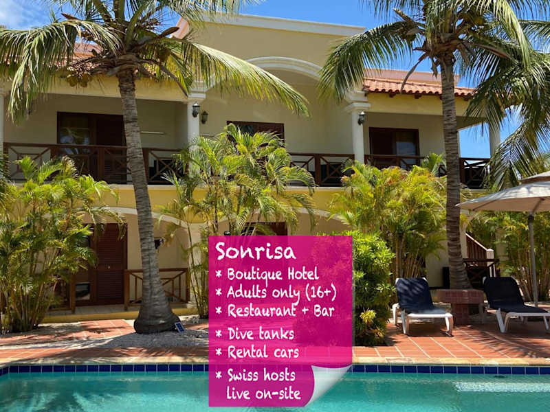 Das Adults Only Boutique Hotel Sonrisa bietet seinen Gästen ein persönliches und einzigartiges Urlaubserlebnis. Mit nur 10 geräumigen Suiten und einer charmanten Atmosphäre ist dieses Hotel perfekt für Paare, die eine private und entspannte Auszeit suchen. Der schöne Swimmingpool und die großzügige Gartenoase sorgen für eine sofortige Urlaubsstimmung. Das Hotel bietet auch eine spezielle Auswahl an Mietwagen, um den Nationalpark zu erkunden oder Tauchausflüge zu unternehmen. Mit Tauchbecken vor Ort und der Möglichkeit, Tauchausrüstung zu spülen und aufzubewahren, ist das Hotel ideal für Taucher. Kommen Sie und lassen Sie sich von der Gastfreundschaft und Unterstützung der Besitzer Corinne und Beat verzaubern.