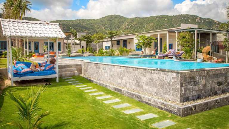 Genießen Sie einen entspannten Aufenthalt im Sorrento Beach Club & Kite Village in Phan Rang. Das Hotel bietet einen Außenpool, ein Restaurant und eine Bar sowie kostenfreies WLAN und kostenlose Privatparkplätze. Die Zimmer sind stilvoll eingerichtet und verfügen über eine Terrasse mit Garten- oder Meerblick.