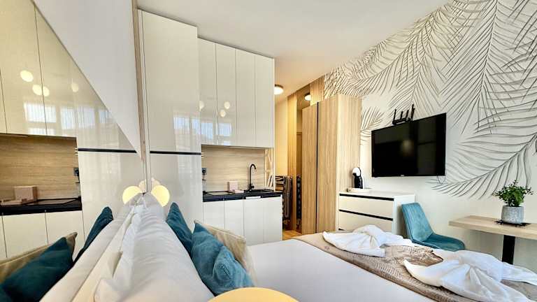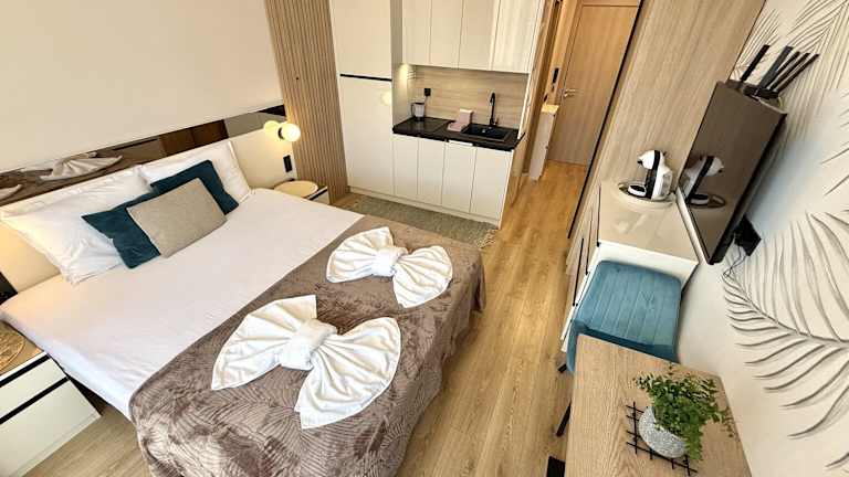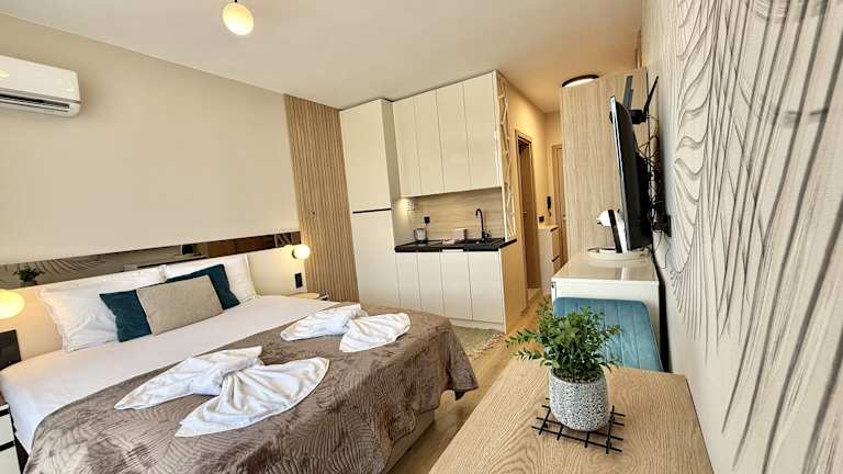 Das Hotel bietet gemütliche und elegante Studios und Apartments mit einem Schlafzimmer. Die klimatisierten Zimmer sind mit modernen Annehmlichkeiten wie einem Flachbild-Sat-TV, einer Küchenzeile und einem eigenen Badezimmer ausgestattet. Einige Unterkünfte verfügen über einen Balkon oder eine Terrasse sowie einen separaten Wohnbereich. WLAN ist in den öffentlichen Bereichen kostenfrei verfügbar.