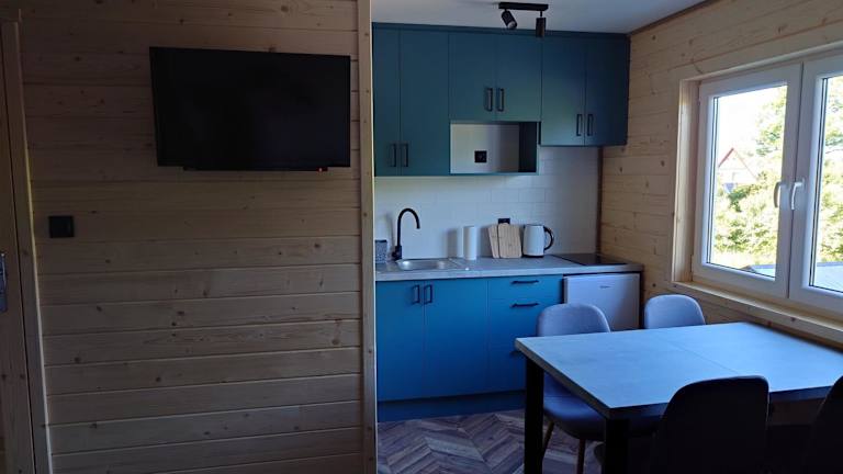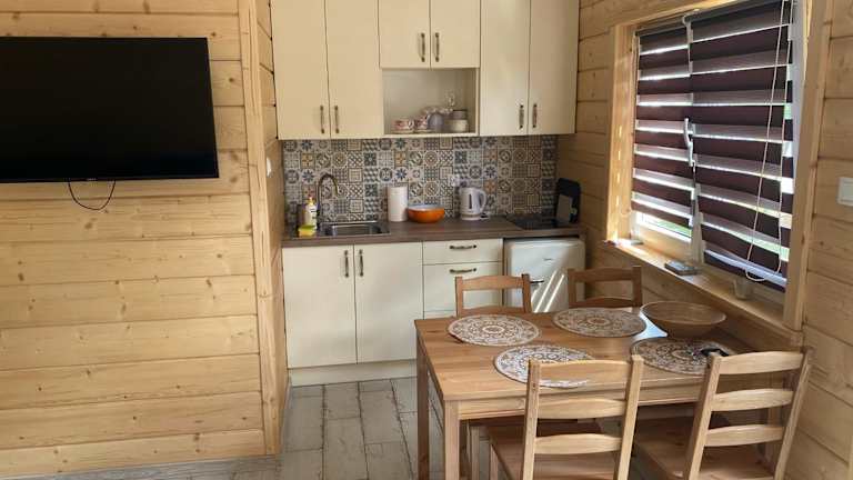 Die Unterkunft im SOSNOWY ZAKĄTEK bietet gemütliche Zimmer mit einer voll ausgestatteten Küchenzeile, die einen Kühlschrank und einen Wasserkocher enthält. Entspannen Sie sich vor dem Flachbild-TV und genießen Sie die Privatsphäre Ihres eigenen Badezimmers mit Dusche. Die Zimmer sind komfortabel und bieten alles, was Sie für einen angenehmen Aufenthalt benötigen.