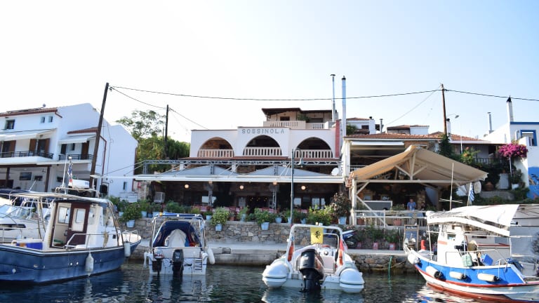 Das Hotel Sossinola liegt im Hafen von Steni Vala in der Bucht von Alonissos. Von hier aus haben Sie einen bequemen Zugang zu Tavernen, Geschäften und dem Strand. Die Umgebung lädt zu erholsamen Spaziergängen und Erkundungen ein. Die Insel Alonissos ist bekannt für ihre beeindruckende natürliche Schönheit und ihre entspannte Atmosphäre.