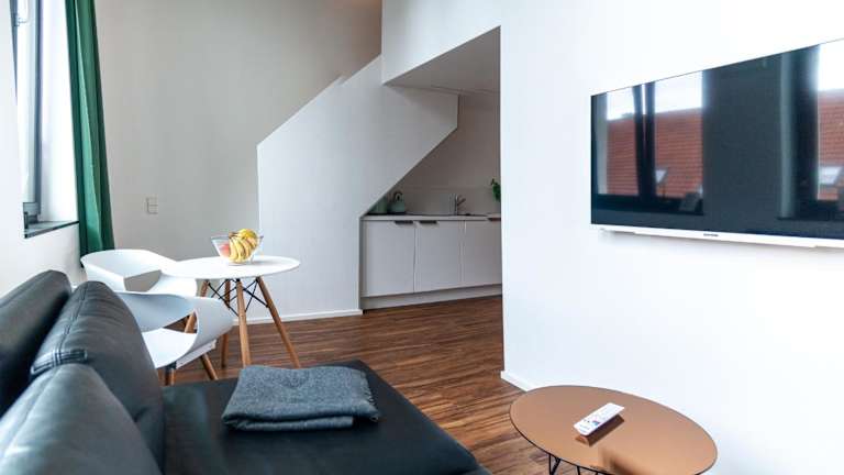 Die Zimmer in den Soulfactory Apartments sind modern und komfortabel eingerichtet. Jedes Zimmer verfügt über einen gemütlichen Sitzbereich und einen Flachbild-TV. Eine Kaffeemaschine steht ebenfalls zur Verfügung, damit Sie sich jederzeit eine Tasse Kaffee zubereiten können. Das private Badezimmer ist mit einer Dusche und kostenlosen Pflegeprodukten ausgestattet. Einige Zimmer verfügen über eine voll ausgestattete Küche mit einem Backofen, sodass Sie Ihre eigenen Mahlzeiten zubereiten können. Alle Zimmer sind zudem mit einem Kühlschrank ausgestattet, um Ihre Lebensmittel frisch zu halten.