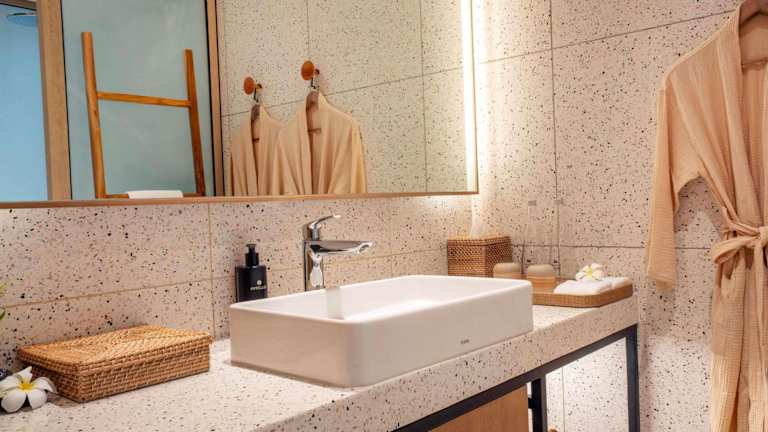 Alle Zimmer im South Palms Resort and Spa Panglao - MGallery Collection sind mit einem Schreibtisch, einem Flachbild-TV und einem eigenen Badezimmer ausgestattet. Zu den weiteren Annehmlichkeiten zählen Bettwäsche, Handtücher sowie ein Safe im Zimmer.
