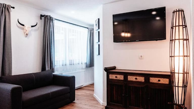 Das Apartment der Southern Stables Ranch bietet Platz für bis zu vier Personen und verfügt über zwei gemütliche Schlafzimmer. Der Wohnbereich ist mit einem Flachbild-Sat-TV ausgestattet, so dass Gäste ihre Lieblingssendungen entspannt genießen können. Die Küche ist komplett ausgestattet mit einem Kühlschrank und einem Geschirrspüler, so dass die Zubereitung von Mahlzeiten zum Kinderspiel wird. Das Badezimmer ist modern und verfügt über eine Dusche. Handtücher und Bettwäsche werden gestellt, so dass Gäste sich um nichts kümmern müssen.