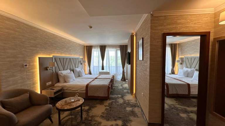 Das Hissar Spa Hotel bietet eine Vielzahl von Freizeiteinrichtungen, um Ihren Aufenthalt noch unterhaltsamer zu gestalten. Dazu gehören Innen- und Außenpools, Innen- und Außen-Whirlpools sowie Kinderpools im Freien und im Innenbereich. Für sportliche Aktivitäten stehen Ihnen zwei Tennisplätze, ein Bowlingcenter, Mini-Fußball, ein Fitnessraum, Billard und Tischtennis zur Verfügung. Ein Kinderspielzimmer und ein Spielplatz in der Nähe des Außenpools sorgen für Spaß und Unterhaltung für die jüngsten Gäste. Für Geschäftsreisende stehen verschiedene Konferenzsäle zur Verfügung, die sich ideal für Kongresse, Geschäftstreffen und Seminare eignen.