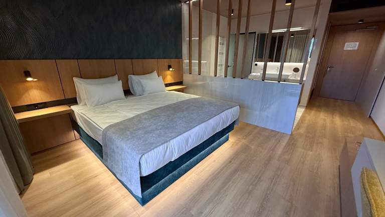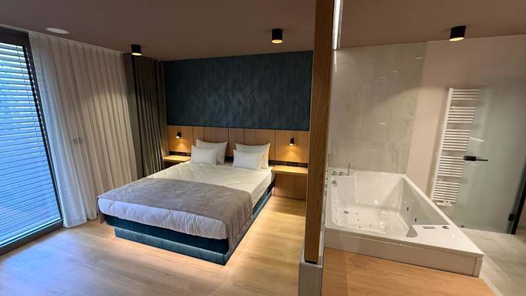Das Spa & Wellness Hotel Paradiso ist ein ideales Hotel für alle, die nach Entspannung und Komfort suchen. Mit seiner günstigen Lage nahe der Autobahn A2 und seinen zahlreichen Annehmlichkeiten wie kostenlosem WLAN, kostenfreien Parkplätzen und einem köstlichen Frühstücksbuffet bietet es alles, was Sie für einen angenehmen Aufenthalt benötigen. Genießen Sie den Blick auf den umliegenden Park von Ihrem geräumigen und klimatisierten Zimmer mit Balkon. Entspannen Sie im kleinen Wellnessbereich mit Pools, Fitnesscenter und Saunen. Die Umgebung des Hotels bietet auch viele Freizeitaktivitäten wie Wandern, Angeln und Golfen. Entdecken Sie die malerische Region Dolenjska mit ihrem mittelalterlichen Schloss Otočec, das nur eine kurze Autofahrt entfernt liegt.