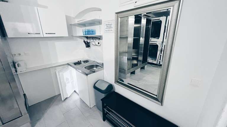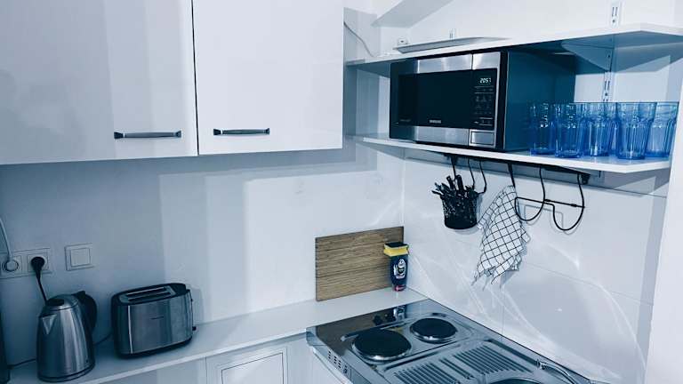 Space One Vienna - Apartment 1 ist eine Ferienwohnung, die modernen Komfort bietet und mit Klimaanlage ausgestattet ist. Sie bietet Platz in einem Schlafzimmer und verfügt über zwei Badezimmer sowie eine Küchenzeile.