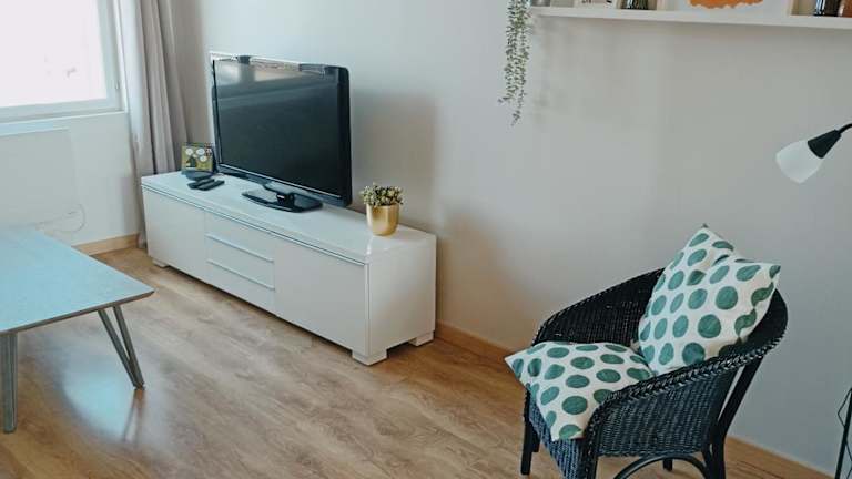 Die Ferienwohnung verfügt über zwei Schlafzimmer, ein Wohnzimmer und eine voll ausgestattete Küche mit einem Kühlschrank und einer Kaffeemaschine. Ein Badezimmer mit einer Badewanne und einem Haartrockner ist ebenfalls vorhanden. Zudem ist ein Flachbild-TV vorhanden.