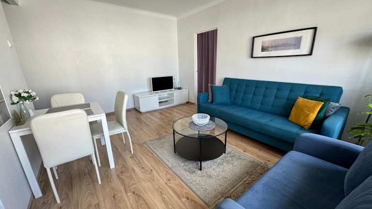 Die Ferienwohnung verfügt über 1 Schlafzimmer und ist mit einem Flachbild-TV, einem Essbereich, einer Küche mit Kühlschrank und einem Wohnzimmer ausgestattet. Handtücher und Bettwäsche werden bereitgestellt.