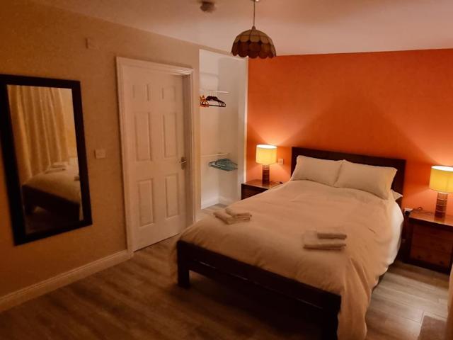 Das Curragh 2-Bett-Apartment verfügt über zwei Schlafzimmer, ein Wohnzimmer und eine voll ausgestattete Küche mit Kühlschrank und Wasserkocher. Es gibt auch zwei Badezimmer mit Dusche und kostenlosen Pflegeprodukten. Handtücher und Bettwäsche werden im Apartment gestellt, so dass Sie sich um nichts kümmern müssen. Das Apartment bietet auch kostenfreie Privatparkplätze und einen Garten, in dem Sie sich entspannen können.