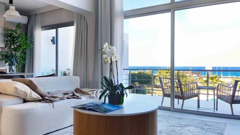 Das Spacious Two-Bedroom Apartment with Sea View B3 umfasst ein klimatisiertes Apartment mit drei Schlafzimmern, einem Wohnzimmer, einer voll ausgestatteten Küche und zwei Badezimmern. Die Unterkunft bietet kostenfreies WLAN, einen Außenpool, einen Garten und eine Terrasse. Ein privater Parkplatz steht kostenlos zur Verfügung.