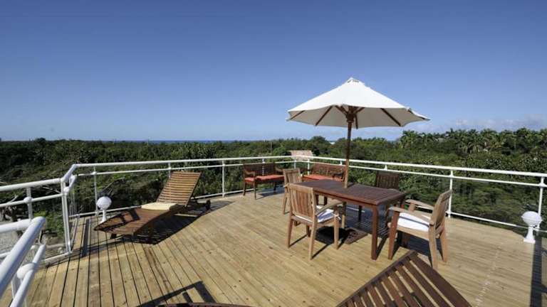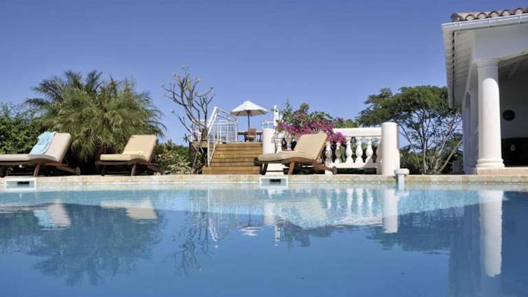 Verbringen Sie einen unvergesslichen Aufenthalt in der 5-Schlafzimmer-Villa in Saint Martin, nur 200 m vom Strand entfernt. Genießen Sie den atemberaubenden Poolblick vom Balkon aus und entspannen Sie im Außenpool. Die Villa bietet Ihnen alle Annehmlichkeiten, die Sie für einen komfortablen Aufenthalt benötigen, einschließlich kostenfreiem WLAN. Erkunden Sie die Strände Baie aux Prunes und Baie Longue, die nur wenige Gehminuten entfernt sind, und lassen Sie sich vom Charme von Saint Martin verzaubern.