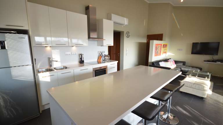 In der modernen Küche mit Arbeitsflächen aus Stein, einem Geschirrspüler und einer Mikrowelle können Sie sich Ihre Mahlzeiten zubereiten. Am Jan Thiel Beach erwarten zahlreiche Bars und Restaurants Ihren Besuch.