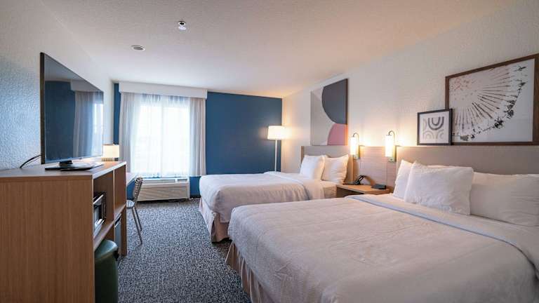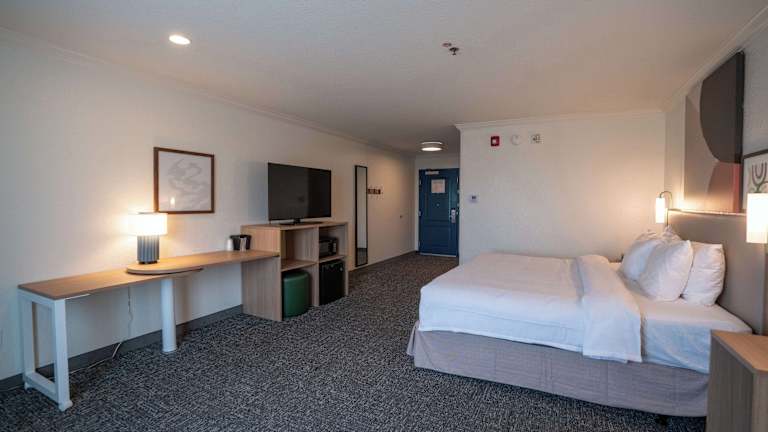 Die Zimmer sind klimatisiert und bieten eine Heizung. Jedes Zimmer ist ausgestattet mit einem Queensize- oder Kingsize-Bett. Zudem stehen ein Schreibtisch, eine Mikrowelle, ein Kühlschrank sowie eine Tee-/Kaffeestation zur Verfügung. Ein TV-Gerät mit Satelliten-/Kabelempfang und kostenfreies WLAN sind ebenfalls vorhanden. Die Badezimmer sind mit einer Badewanne und Haartrockner ausgestattet sowie mit Kosmetikartikeln für zusätzlichen Komfort. Es sind auch rollstuhlgerechte Zimmer buchbar.