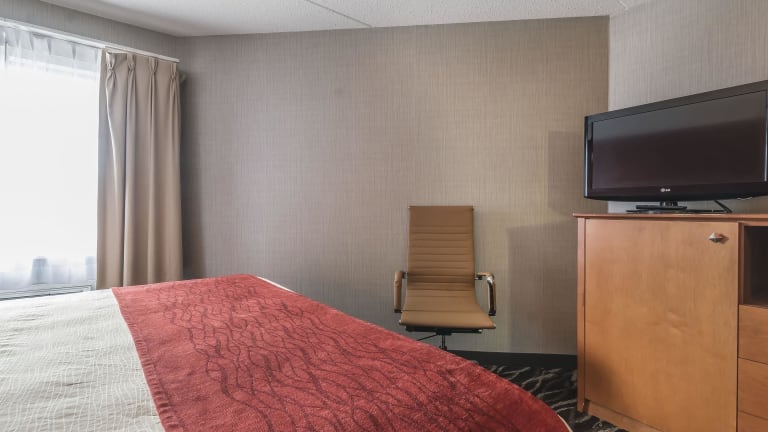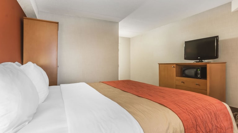 Das Comfort Inn Oshawa bietet 80 Nichtraucherzimmer auf 2 Etagen, die bequem mit dem Aufzug erreichbar sind. Die Zimmer sind mit Klimaanlage, Kühlschrank, Mikrowelle, Tee- und Kaffeekocher, TV mit Kabelempfang und WLAN ausgestattet. Die rollstuhlgerechten Zimmer verfügen über barrierefreie Badezimmer.