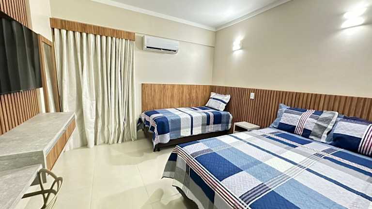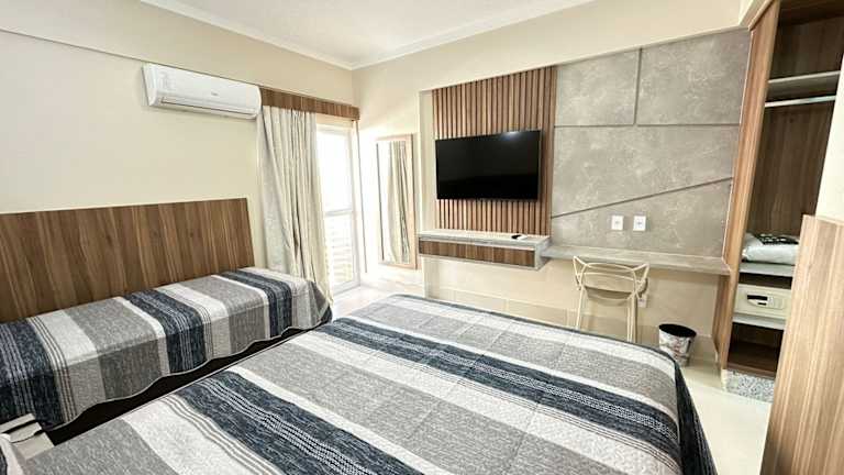 Die klimatisierten Zimmer sind mit einem Kleiderschrank, einem Safe, einem Flachbild-TV, einem Balkon sowie einem eigenen Badezimmer mit Dusche ausgestattet. Alle Zimmer verfügen über Bettwäsche und Handtücher.