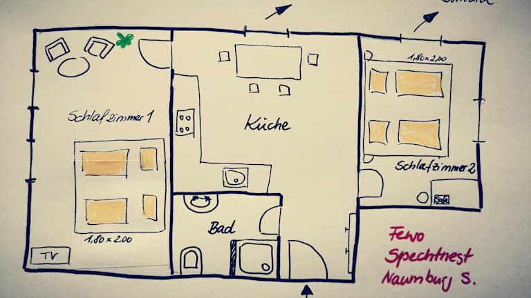 Das Spechtnest in Naumburg ist ein charmantes Apartment, das in einem historischen Gebäude aus dem 18. Jahrhundert untergebracht ist. Hier können Sie in gemütlichen Unterkünften mit Blick auf den Garten entspannen und die Annehmlichkeiten wie kostenloses WLAN und kostenfreie Privatparkplätze genießen. Das Apartment bietet Platz für bis zu 4 Personen und verfügt über eine Terrasse mit Blick auf die Stadt. Die Lage des Apartments ist ideal, da es nur wenige Kilometer von beliebten Sehenswürdigkeiten wie dem Zeiss Planetarium und der Universität Jena entfernt liegt.