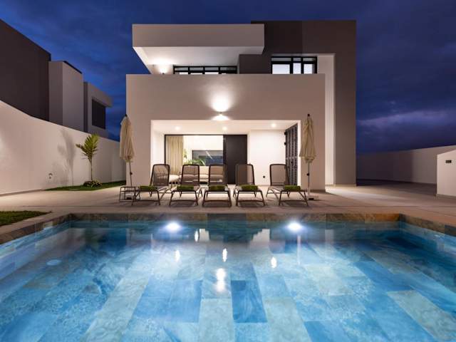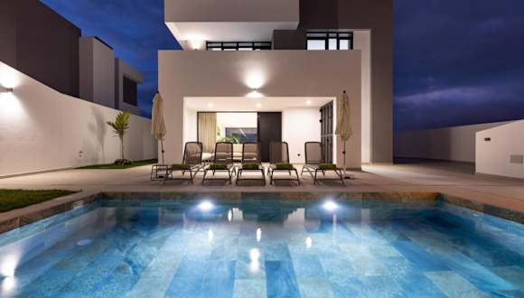 Das Ferienhaus bietet Platz für bis zu 10 Gäste und verfügt über einen eigenen Außenpool sowie einen Balkon mit Meerblick. Die Unterkunft ist für Gäste ab 18 Jahren geeignet und keine Feiern wie Junggesellenabschiede sind erlaubt. Es stehen zahlreiche Annehmlichkeiten zur Verfügung, darunter kostenloses WLAN und ein kostenloser Privatparkplatz.