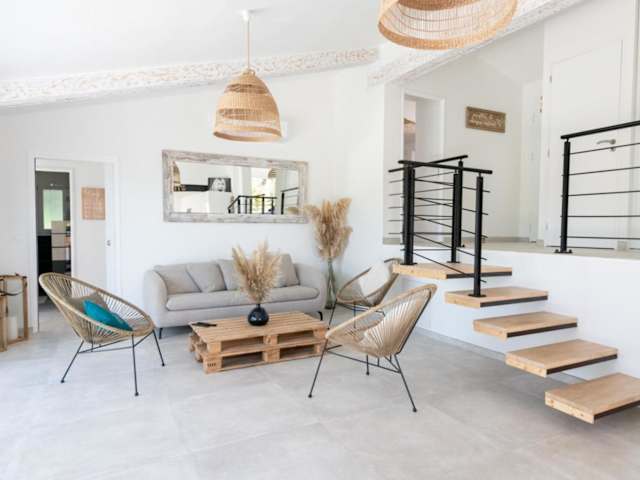 Erleben Sie einen traumhaften Aufenthalt in der Splendid Villa mit Pool und Meerblick in Saint-Peïre-sur-Mer. Dieses Ferienhaus bietet Ihnen alle Annehmlichkeiten, die Sie für einen unvergesslichen Urlaub benötigen. Genießen Sie die ruhige Lage, den privaten Pool und die wunderschöne Terrasse mit Blick auf die Stadt. Das Haus verfügt über 4 komfortable Schlafzimmer, 3 Badezimmer, eine voll ausgestattete Küche und einen gemütlichen Essbereich. Kostenloses WLAN und Klimaanlage sorgen für zusätzlichen Komfort. Die Lage ist ideal, um die Umgebung zu erkunden, mit Peiras und San Peire nur wenige Kilometer entfernt. Der Bahnhof Saint-Raphaël Valescure ist ebenfalls gut erreichbar.