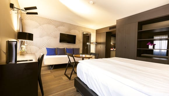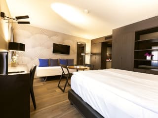 Das Hotel San Carlo Suite befindet sich im Herzen von Lugano und ist nur 1,2 km vom Messezentrum entfernt. Hier erwarten Sie klimatisierte Zimmer mit Flachbild-TV und eigenem Bad. Kostenloses WLAN ist in allen Bereichen verfügbar und als Gast haben Sie Zugang zu einem Friseur im selben Gebäude. Die Unterkunft bietet zudem ermäßigte Preise für Gäste. Erkunden Sie die nahegelegenen Sehenswürdigkeiten wie das Kunstmuseum Lugano oder den Monte San Salvatore, der nur 1,3 km entfernt ist. Der Flughafen Lugano-Agno ist nur 3 km entfernt.
