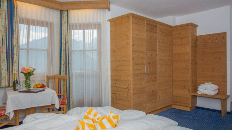 Traumhaft schöne und geräumige Doppelzimmer wahlweise in warmen Zirben-, Fichten- oder Ahornholz eingerichtet, mit Dusche/WC oder Bad/WC, Bademantel, Badepantoffel, Föhn, Sat-TV, Telefon, Radio, Safe, Sitzecke, W-Lan, und Balkon ausgestattet.